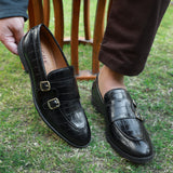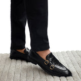 NICHE Black Crco Pattern Luxurious Double Monk Slipons