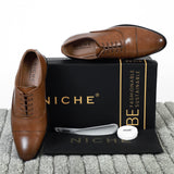 Classics are unbeatable, classics are evergreen, classics are pure happiness, hence these classic oxford men shoes from NICHE. Perfect for formal events, business meetings, or everyday elegance. Crafted for the modern gentleman, these shoes blend sophistication and comfort, making them ideal for any occasion—be it a boardroom meeting or an evening out. Elevate your style and make a lasting impression with footwear that speaks confidence. Perfect fit, classic design—this is your go-to shoe for every sharp outfit. Own your look!