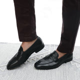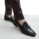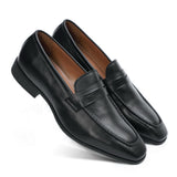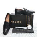 A modern nod to timeless taste — our black penny loafers merge clean lines with unmatched comfort. The T-shaped design and broad fit give them a commanding charm, perfect for men who know that simplicity is the purest form of sophistication.