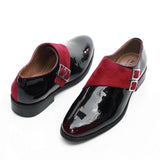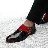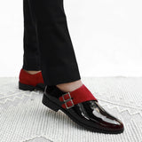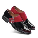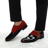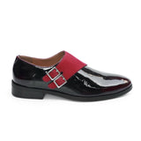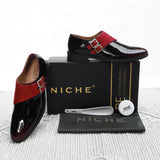 Men! Wearing a Tux, This one's for you. This isn’t just a shoe — it’s a MASTERPIECE in contrast. The Black Patent Double Monk gleams with a tuxedo-worthy mirror shine, while the striking red suede strap cuts through with unapologetic flair. A blend of classic patent formality and modern daring, this pair redefines what it means to dress in black-tie..