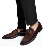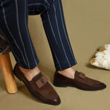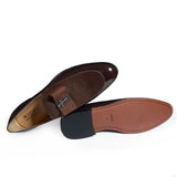 Handcrafted for lounging around the house, tipple in hand, these NICHE Brown Patent loafers for men, with their slight heel and patent design, are sophisticated enough to pair with any evening wear. Slip into these Luxurious Loafers in Brown to set a Style statement.