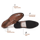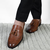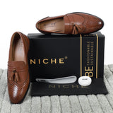 When it comes to class, style and comfort, these NICHE loafers are perfect for your wardrobe. These brown loafers come with traits of a brogue and tassel in one shoe.