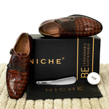 Beautiful, Just beautiful! One of the most elegant and stylish option for your anyday outfit. Embrace comfort and class with the subtly stitched Monk shoe with a dapper Croco upper, it is that kind which everyone should own. Jeans, Chinos, suits, bandgala, kurta, this shoe is here to adapt and make you look perfect for any environment.