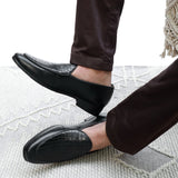 • Upper - Black Croco Loafers, Slipon Loafers for men