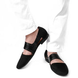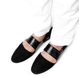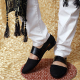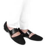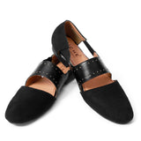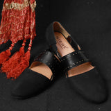 One of the most Trendiest and yet most sophisticated footwear in our store, These Cap toes half open Sandals are in mix of Black Suede and Black faux leather with Gold Studs in between will make you wear Day in, Day out. Its all About comfort and luxury at the same time. The flamboyance is the character of these Sandals in which they are made. Minimal and yet so Bold, do shop them without having any second thought. These are very light weighing around just 800 Gms a pair.