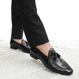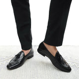 Texture. Detail. Presence. These Black Croco Tassel Loafers for men are crafted for those who stands apart. Handcrafted in luxe crocodile-finish upper and finished with refined tassels, these loafers redefine modern elegance. Available in brown, tan, and black — made for men who lead with style and substance.