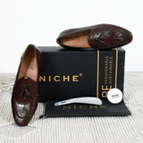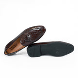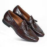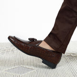 Texture. Detail. Presence. These Brown Croco Tassel Loafers for men are crafted for those who stands apart. Handcrafted in luxe crocodile-finish upper and finished with refined tassels, these loafers redefine modern elegance. Available in brown, tan, and black — made for men who lead with style and substance.