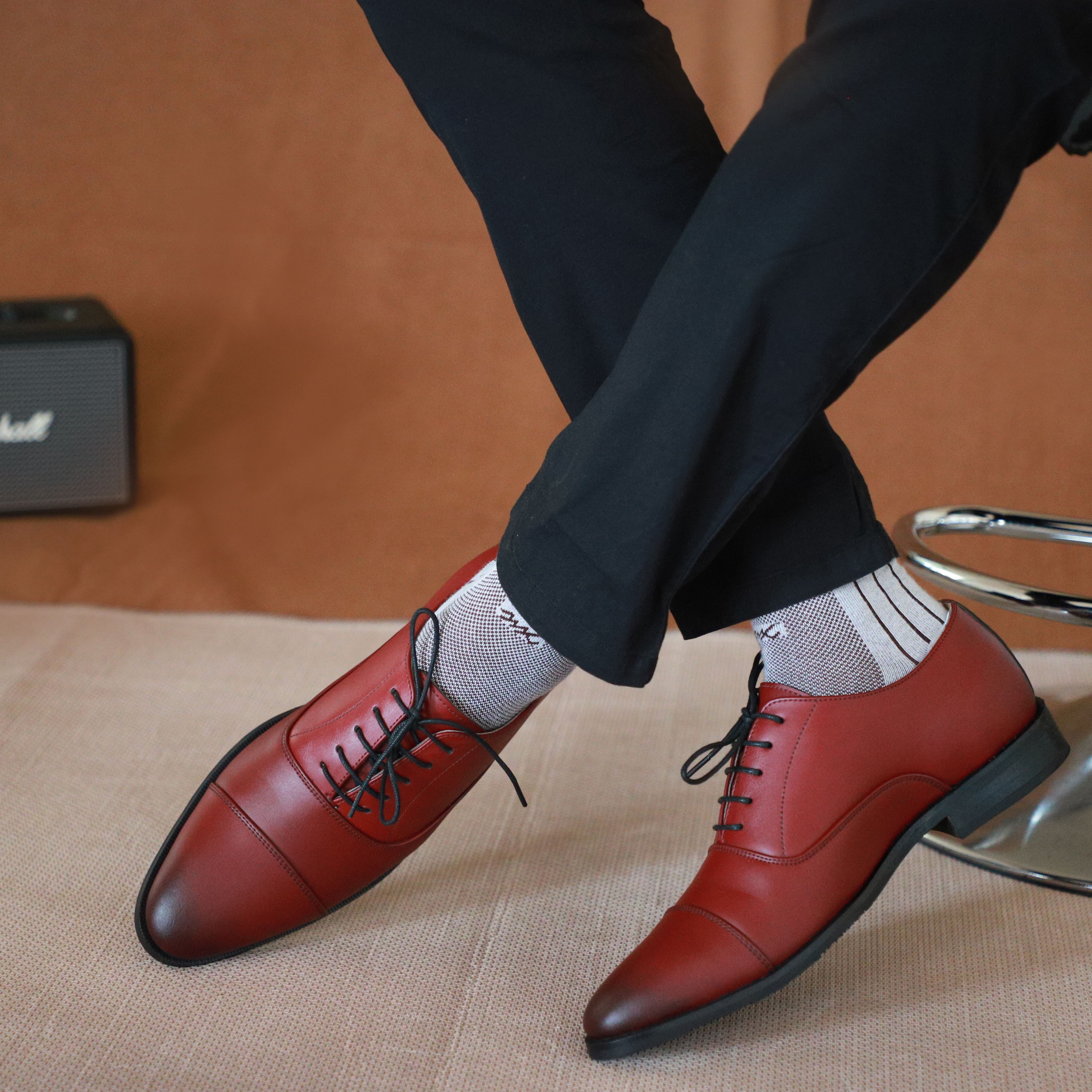 These classically cut Cap-toe oxfords with closed five-eyelet lacing stay modern thanks to Handmade Sheeted sole. These shoes captivate with their fascinating color gradient, made possible by an elaborate hand finish.