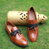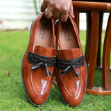 Looking for the ideal shoe to match all your work outfits? Look no further. This Tan Croc handmade shoe with Brown Leather tassel is the epitome of elegance and a must have in any shoe wardrobe. Going straight for drinks after work and want to change into jeans? Well, with this new NICHE Tassel Loafers in your closet, you’re all set to rock both looks without having to change shoes. Stylish, comfortable and devilishly handsome is a must have.