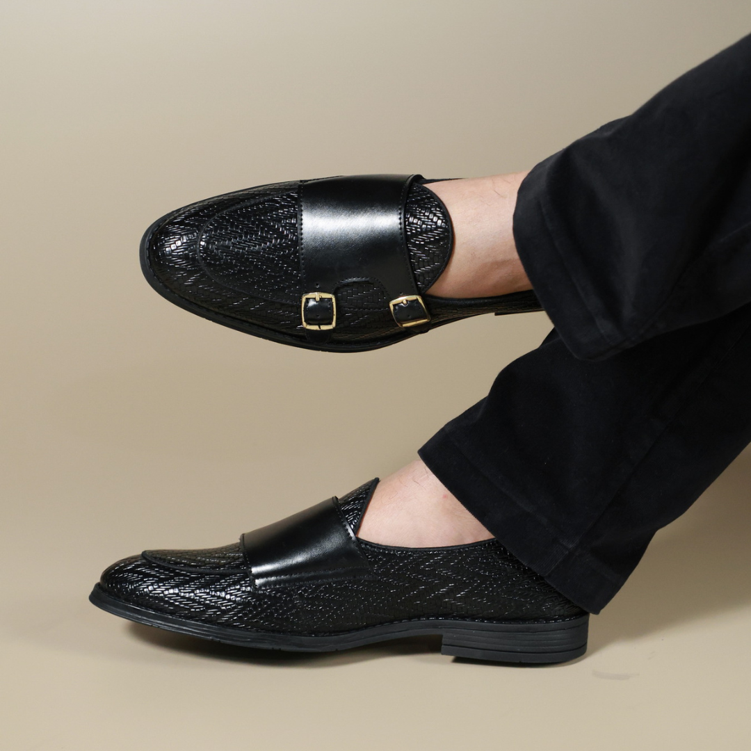 Different | Stylish | Sophisticate, for men who love style & comfort. Never seen & never heard shoe, this has the Swag of a Slipon, A double Monk and a Loafer. This will add suave to your outfit effortlessly. Essentially a loafer, we have made this version more fashionable by giving it the Strap treatment as seen with its distinctive pattern and is braided with 3 different patterns throughout. This is what we call – THE BEST IS HERE TO SHOP!