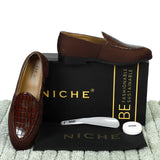 A RARE FIND! Dress to impress with these luxurious yet subtle loafer from NICHE. With a full suede on the side and Croco Shiny Vamp, classic bit detailing and modern round toe, these slip-ons are meant to be your go-to for working meetings or date nights or a casual stroll.