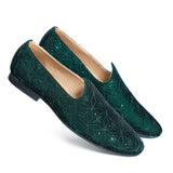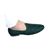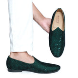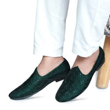 These princely Mojaris / Jutti Shoes with Squin motif and quintessentially designed will definitely make you stand out of the crowd in any kind of ceremony. A single shoe takes more than 24 hours to carefully weave each and every strand of thread into the upper of the Shoe. These durable men ethnic mojaris are made by hand and feature a sleek, classic and ultra comfort design. Mind you, these are not ordinary printed Mojaris, its all mirror and Sequin work that make these different from the Others. These hand- Zardozi ethnic Mojaris / Juttis are made to provide the perfect look