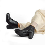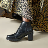 NICHE Women Block Heel Zip-Up Boots (Black)