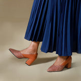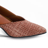 Daring and distinct, Chevron Pumps are strikingly glamorous yet grounded. Set on block heels, this pair has a beautiful arrangement of a combination of leather back & fabric front . Glide on in these ultra comfortable all day wear pumps with a matching flowy gown or a short, pleated dress, or even a formal fit and complete your outfit with a leather-fabric clutch!