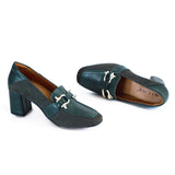 WOWW! That's what comes to your mind when you see them, MINDBLOWING! Thats't what you say when you wear them. This green trendy color with mix of suede and smooth vegan leather with horsebit style buckle on the vamp will add a bling to your outfit. These Pumps are a must have for office wear to coffee outing to date night. With those block heel & memory cushioning comfort, you can take them to club nights as well