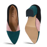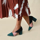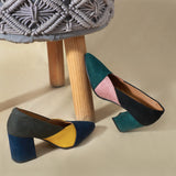 Brighten up your wardrobe with the Vibrant Daisy pumps by NICHE. Featuring three-vibrant suede skin, these eye-catching block heels are designed to add a bold statement to your more polished looks. The pointed toe make it ideal for formal occasions, while the cushioned insole ensures all-day comfort. With its slip-on design, these bold pump provide ease of wear while offering a secure fit. Perfect for pairing with tailored trousers or sophisticated dresses, this standout shoe brings a touch of vibrant elegance to your more elevated ensembles.