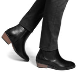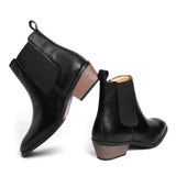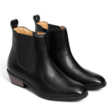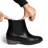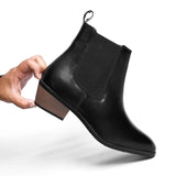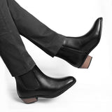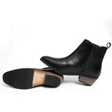 Sleek black Chelsea boots with a bold Cuban heel for confident style and subtle height.