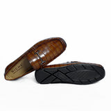The moccasin, an icon of style that does not seem to know the passage of time, is undoubtedly the most loved footwear by the man who wants to wear a classic dress but also extremely comfortable. We at NICHE has brought you the same moccasin making it a definition of Ultra Luxury and Supreme Comfort. Because of its make and U shape Toe it molds to your foot for a glove-like fit. The full Croco pattern moccasin in cherry for for men is Swanky & Dapper & Classy & Luxurious, the list goes on. The sole is also made with our Fusion techonolgy for you to wear this 24*7.
