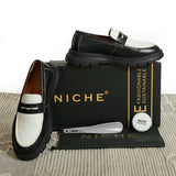 NEW Black & White Bold Loafers—made for men who like their style clean, classy & confident. Designed with a big, chunky EVA sole, this pair is super lightweight yet gives a strong, premium presence.