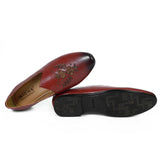 These princely Mojaris / Jutti Shoes with a HAND EMBROIDERED motif and quintessentially designed will definitely make you stand out of the crowd in any kind of ceremony. A single shoe takes more than 24 hours to carefully weave each and every strand of thread into the upper of the Shoe. These durable men ethnic mojaris are made by hand and feature a sleek, classic and ultra comfort design. Mind you, these are not ordinary printed Mojaris, its all Needle work that make these different from the Others. These hand- Zardozi ethnic Mojaris / Juttis are made to provide the perfect look