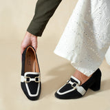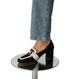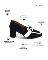 WOWW! That's what comes to your mind when you see them, MINDBLOWING! Thats't what you say when you wear them. This trendy color with mix of suede and smooth vegan leather with horsebit style buckle on the vamp will add a bling to your outfit. These Pumps are a must have for office wear to coffee outing to date night. With those block heel & memory cushioning comfort, you can take them to club nights as well